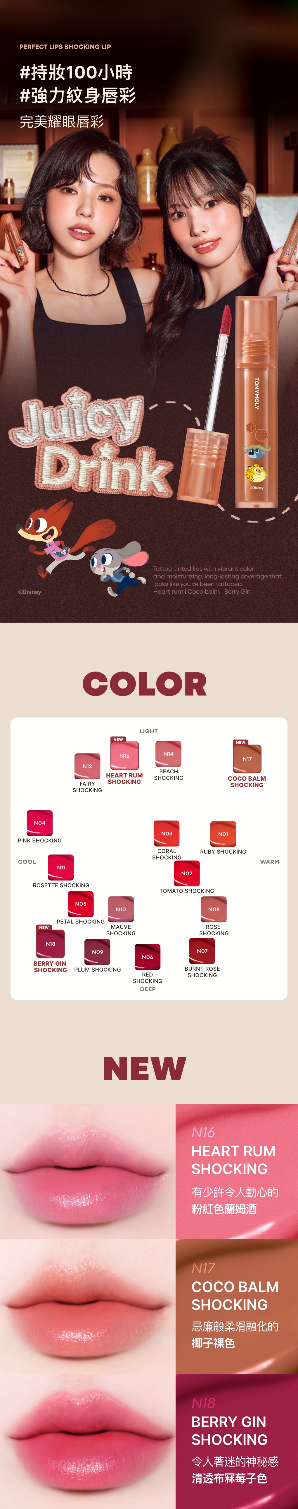 被譽為「國民唇彩」的TONYMOLY完美耀眼唇彩,擁有驚人的持久力,更透過30小時持久顯色測試,令您從此省卻補妝煩惱。加上扁平設計的斜角刷頭,助您輕易繪出細緻完美唇妝。