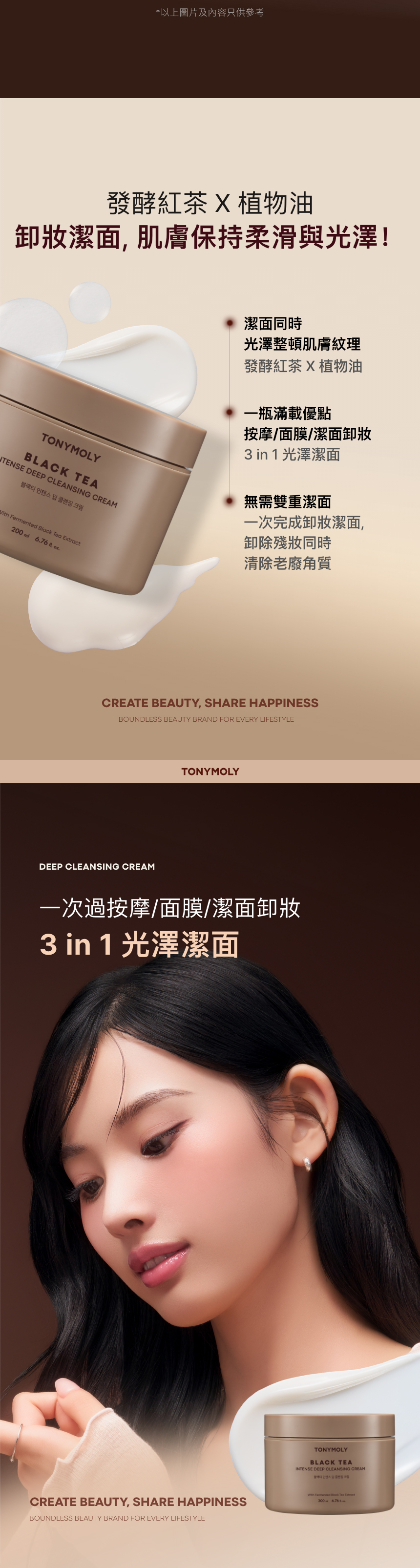 紅茶抗氧修護深層卸妝霜為三效合一亮膚潔顏乳,集按摩、面膜與卸妝潔面功能於一身。配方蘊含經 216 小時低溫發酵 的紅茶萃取物,富含抗氧化多酚,能有效提亮膚色並提升肌膚彈性。結合植物油與保濕成分,一步即可卸除彩妝與雜質,無需二次清潔,令肌膚潔淨、光滑、透亮。