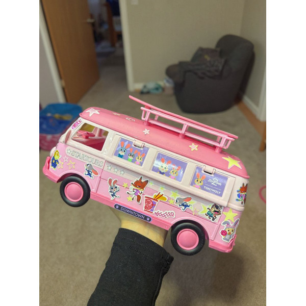 整個禮盒是淺粉色包裝,贈送的巴士造型也是淺粉紅色,搭配Zootopia主題DIY貼紙,貼完後可愛度直接拉滿!看見禮盒的瞬間被「主題造型」吸引!