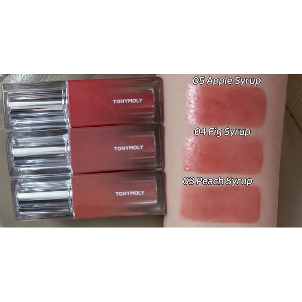 這次試用了TONYMOLY Get It 水漾透亮唇彩的三個色號:03 Peach Syrup、04 Fig Syrup、05 Apple Syrup,整體感受完全超出預期!以下從「保濕度、光澤感、持久度、色調表現」四大面向分享真實心得~