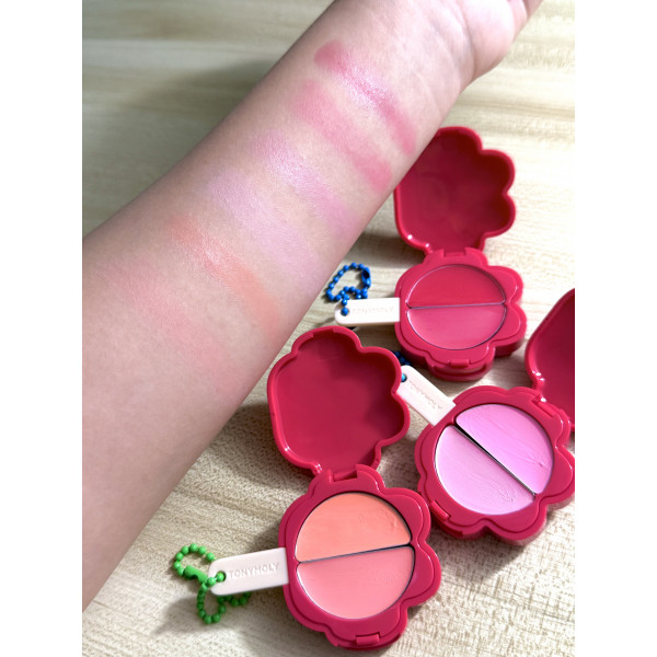 不得不提超可愛既狗爪外型胭脂膏,掛係化妝包真係令補妝都變快樂。打開有兩種質地,一邊係水感啫喱膏狀質地,係一種帶有濕潤感、類似唇彩嘅慕絲質地。推開非常順滑,用手指或海綿蛋都能輕鬆拍開,光澤感好強帶有少少黏膩感,我覺得比較適合用黎滋潤嘴唇,另一邊明顯霧感,顯色得黎自然,很愛