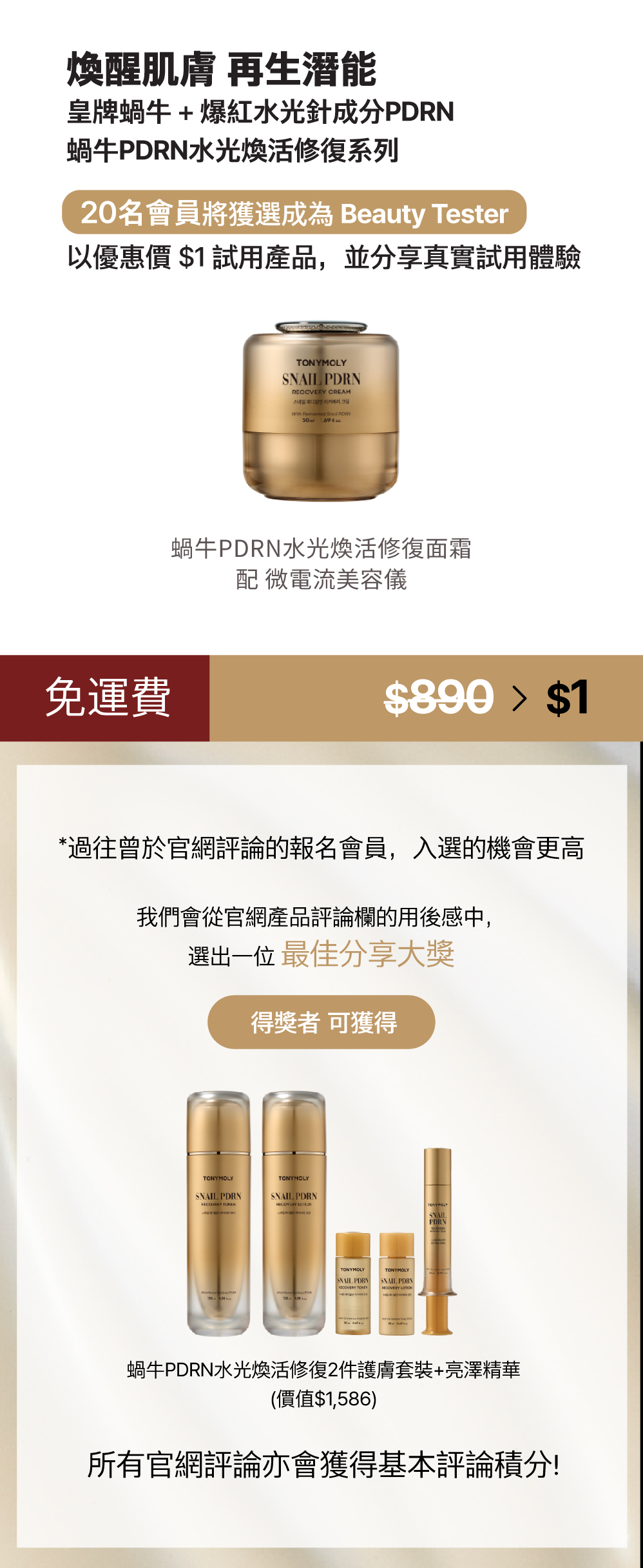 BEAUTY TESTER分享任務團招募 - 蝸牛PDRN水光煥活修復面霜 配 微電流美容儀