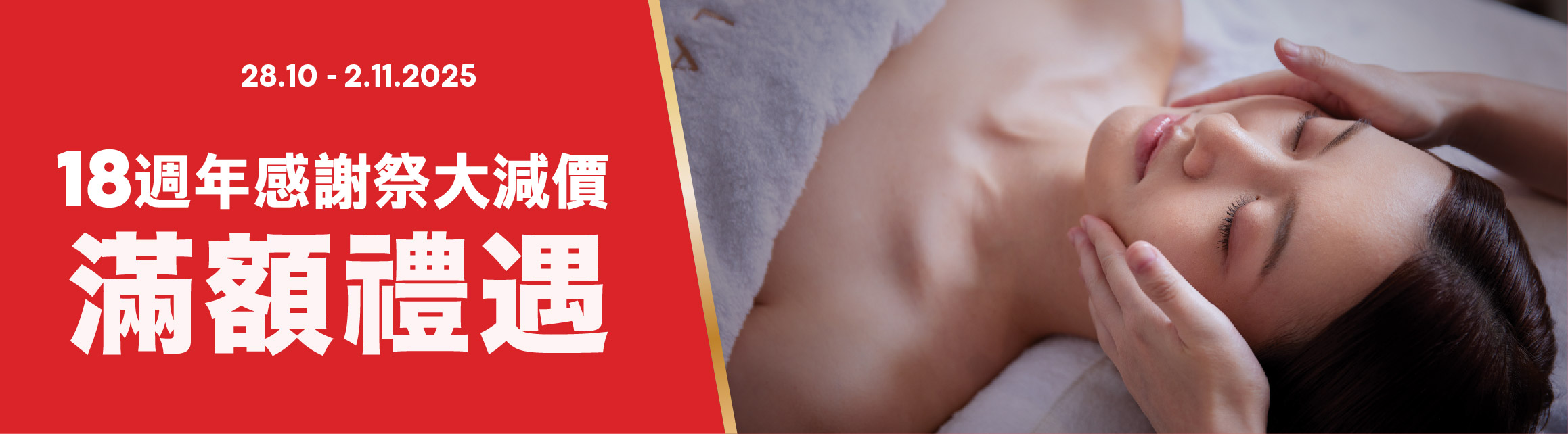 A: 所有2025 18週年感謝祭大減價滿額禮遇療程需於2026年1月31日前預約並完成療程。
