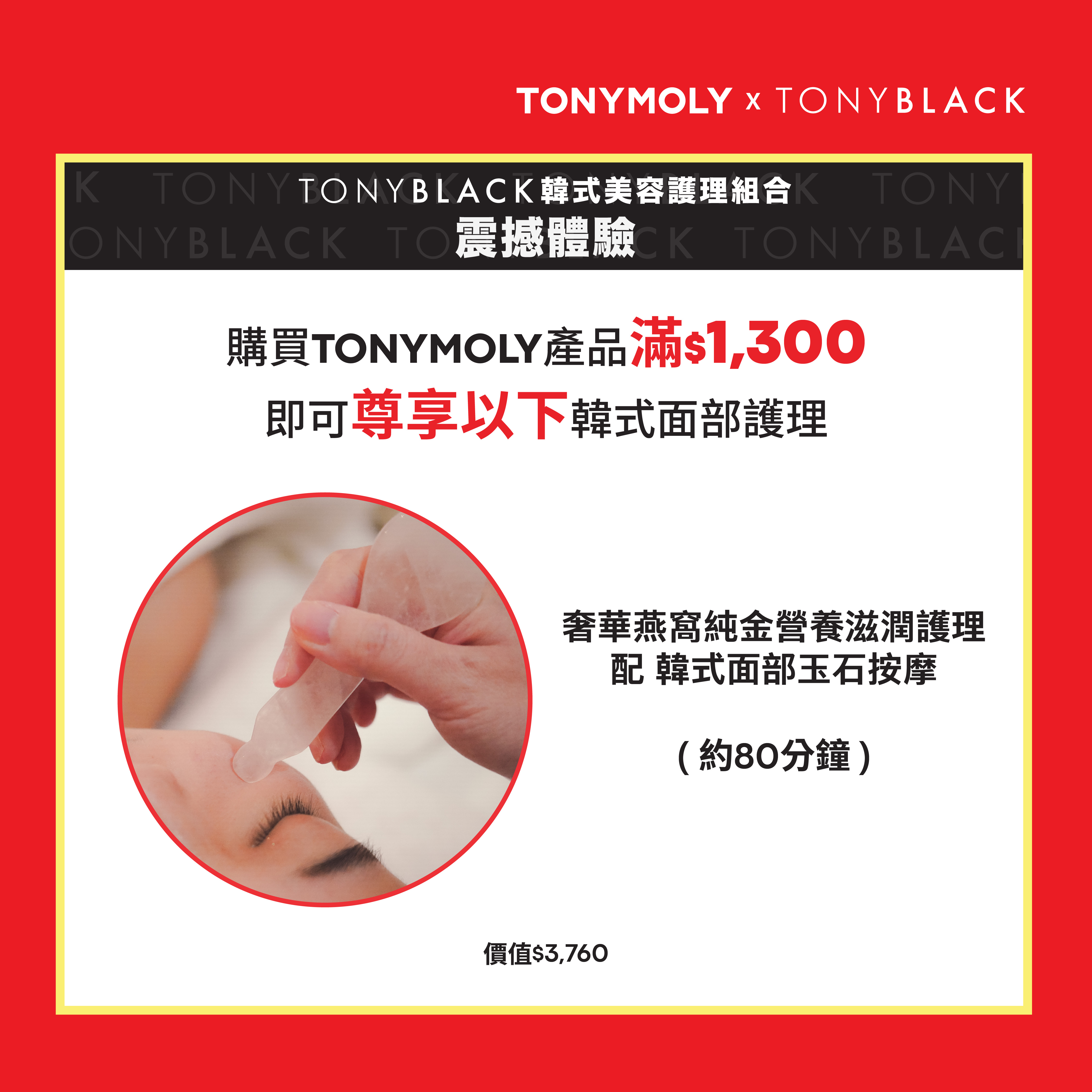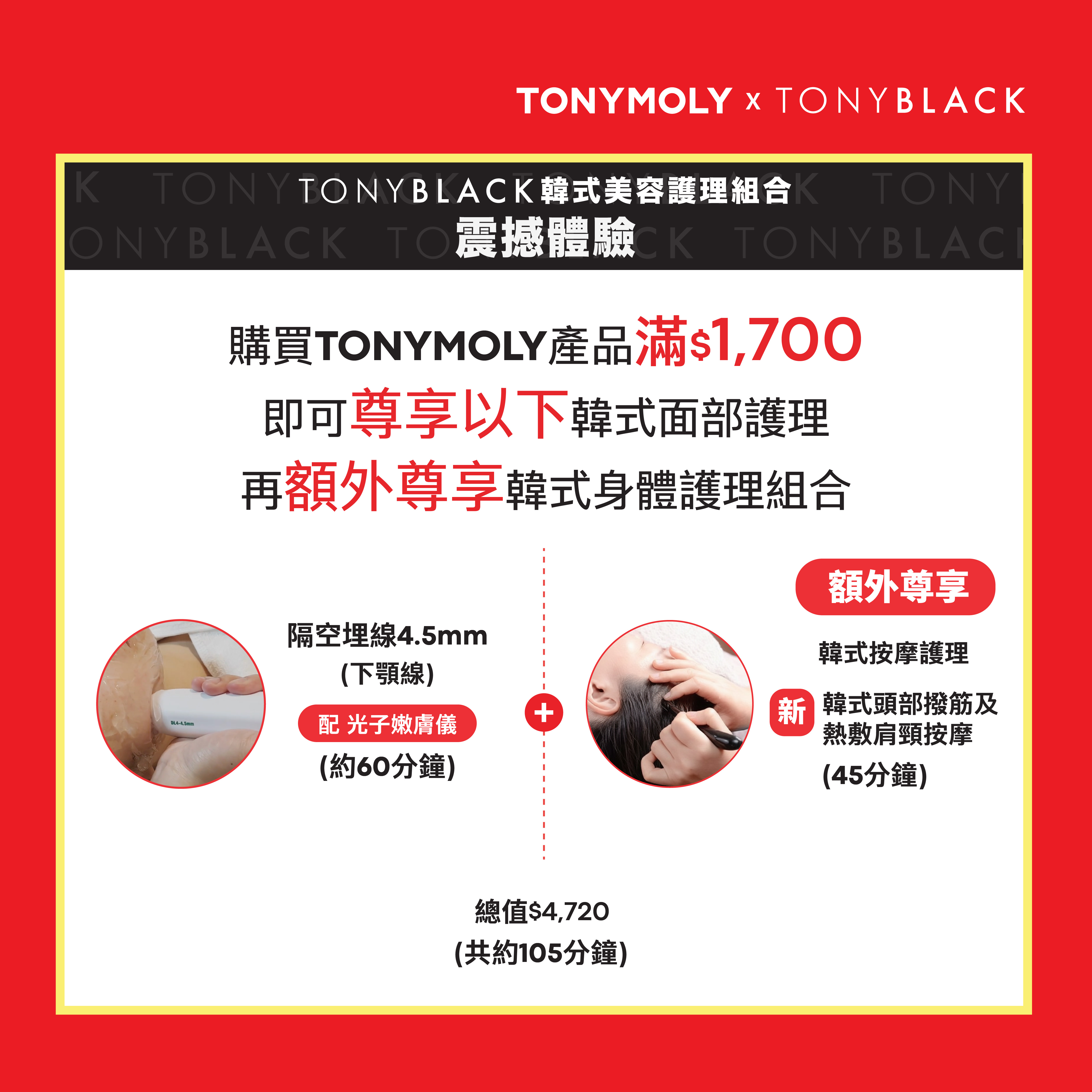 即可免費尊享TONYBLACK韓式美容護理療程!